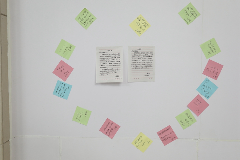 在龙马潭区九狮山留置观察点临时党支部内,一面小小的心愿墙贴满了党小组成员的心愿卡和请战书。