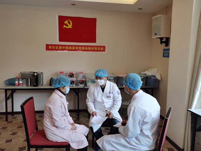 从1月27日开始,青羊区集中隔离医学观察站疫情防控工作便有序开展。为更加高效有力的开展区域疫情防控工作,2月3日,青羊卫健系统党员干部迅速集结,成立青羊区集中隔离医学观察站临时党支部。由成都第一骨科医院院长高巍担任党支部书记,党员人数4人。
