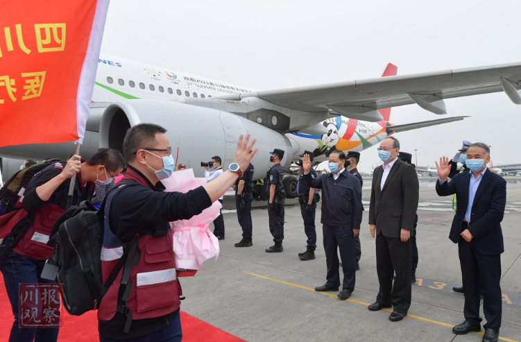 4月7日下午,我省援湖北医疗卫生队最后一批162名队员在圆满完成各项任务后,从武汉平安飞抵成都。省委书记彭清华,省委副书记、省长尹力前往机场迎接,欢迎他们回家,代表省委、省政府和9100多万父老乡亲,向所有援鄂英雄表示诚挚问候和崇高敬意。