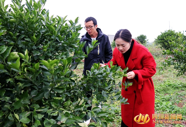 村干部查看果园