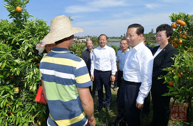 4月27日,省委书记彭清华到内江市资中县银山镇老场村血橙培育基地调研,与正在果园采摘的村民亲切交谈,询问了解农业园区建设、特色产业发展、巩固脱贫攻坚成果等情况。