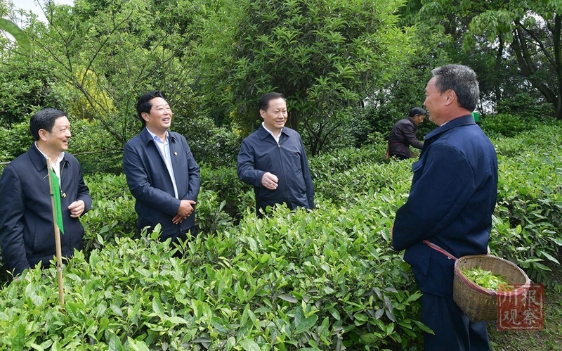 4月27日,省委书记彭清华到宜宾市高县来复镇大屋村调研,与正在茶园劳动的村民交谈,了解生产生活及巩固脱贫攻坚成果等情况。