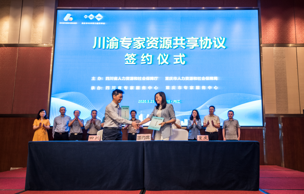 活动现场,四川省专家服务中心和重庆市专家服务中心签订了《川渝专家资源共享协议》。根据双方签订的协议框架,双方要深入贯彻中央和两省(市)党委政府的决策部署,认真落实共同推动成渝地区双城经济圈建设川渝人力资源和社会保障合作协议,采取有力有效的措施支持和鼓励在川在渝的专家人才以智力帮扶方式助力两地高质量发展。
