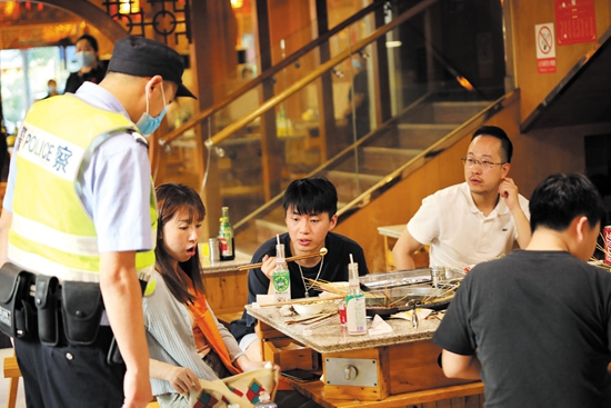 谭岳华告诉记者,派出所牵头建立了商家联盟,定期进行公共安全方面的培训,火锅店、酒馆等都设有专门的安全员,提醒注意防范,一有情况立即和民警联系。同时,把商家的监控探头直接接入派出所,执勤民警进行实时监控。如果发现有可疑人员或者有前科人员,警力立即赶往现场,进行震慑和教育。