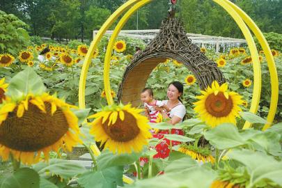 7月4日,天府芙蓉园的百亩葵花进入盛花期。