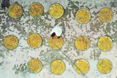 与此同时,美姑县九口乡九口村的村民曲比牛牛忙着把刚采摘的金银花晾干。金银花喜阳、耐寒,适应性强,在田园、山坡等地都可生长,每次开花前的花骨朵就可以采摘上市,其药用价值高,这些晒干后散发着淡淡香气的干花能给他家今年带来一笔不小的收入。