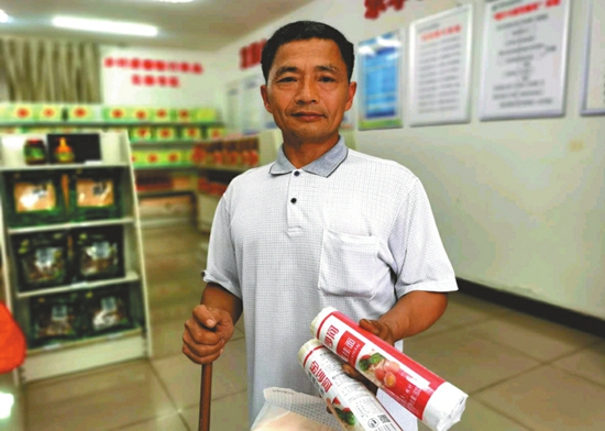 刘本江展示兑换到的奖品。