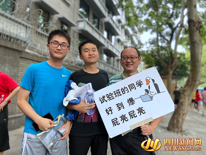 考场外,石室中学高三十班的王老师告诉记者,考试前同学们还特地做了一个加油打气的牌子,“上面写的是试验班的同学好到爆!屁亮屁亮!我希望也借这个祝福大家考试好到爆!”