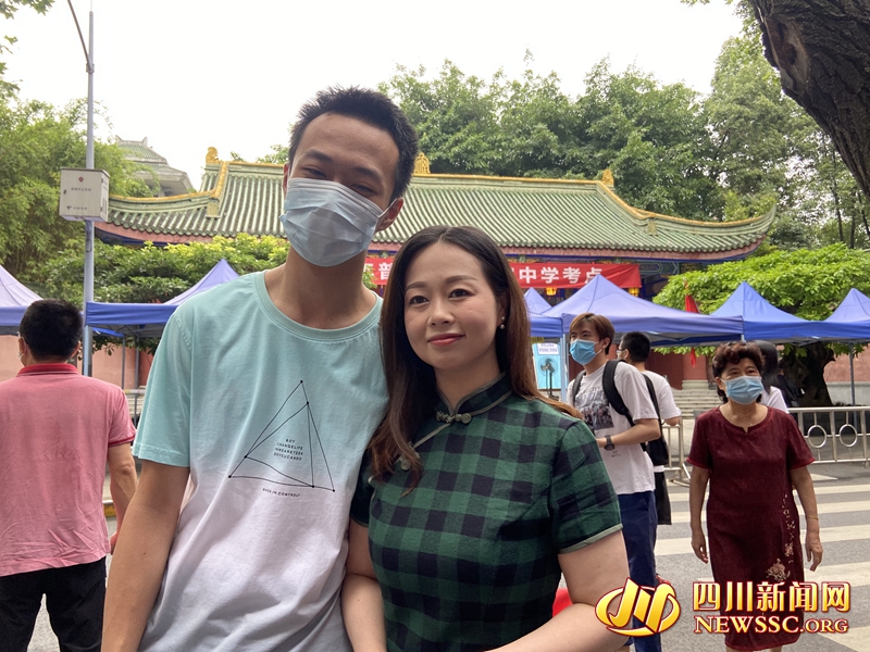 考生唐同学的妈妈告诉记者:“今天早上我特地给他准备了爱吃的早餐,也穿上了旗袍祝他旗开得胜!”