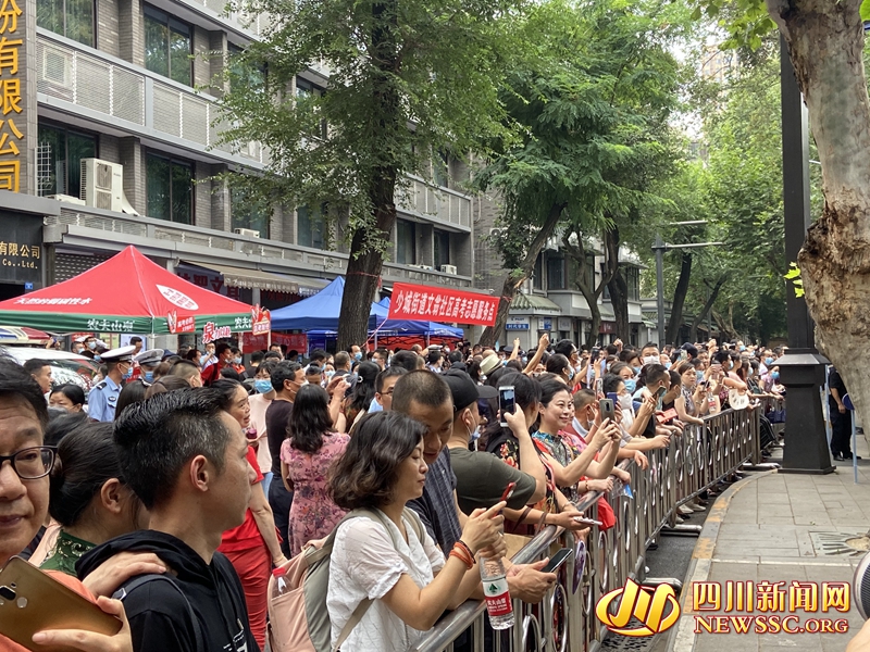 四川新闻网成都7月7日讯(记者 戴璐岭 摄影报道)今天是7月7日,2020年高考大幕正式拉开。上午8:00不到,在成都石室中学考点外,准备考试的同学们正在做着考前的最后准备。同学们互相加油打气,家长们也穿起旗袍,祝同学们旗开得胜。