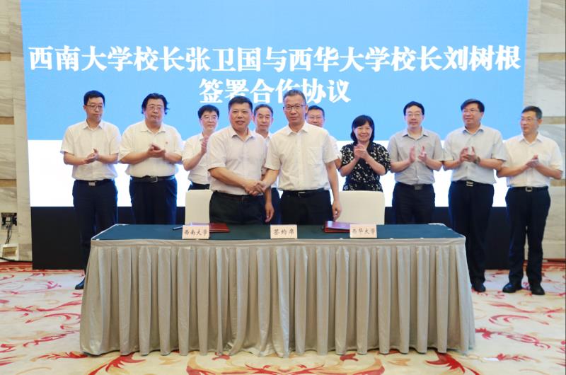 仪式上,西南大学校长张卫国与西华大学校长刘树根签署合作协议。根据合作协议,双方将合作共建“西南农业智能装备科技创新中心”和“川菜渝味产业发展研究院”,依托双方优势基础,整合汇聚资源,推进人才交流和智力合作,重点围绕“农业智能装备”与“川菜渝味食品”两大领域,共建一批创新平台、研发一批关键技术、转化一批科研成果、打造一批示范基地、培养一批专业人才,为建设西部农业科技创新中心和成渝地区双城经济圈建设贡献力量。