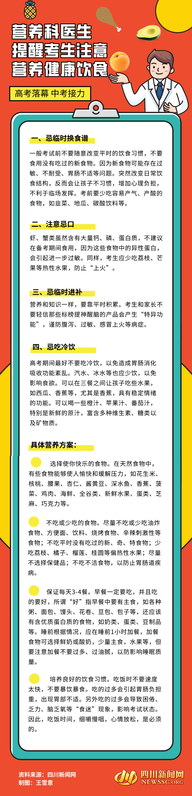 【高考落幕 中考接力】原创海报:营养科医生提醒考生注意营养健康饮食