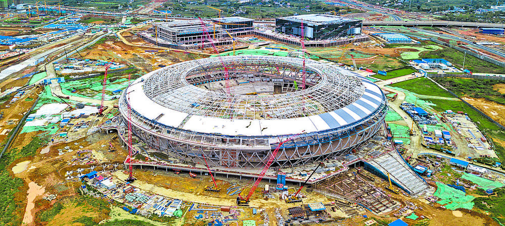 封顶、提前完工……大运会场馆的建设工地捷报频传。目前,13处新建场馆全部完成主体结构封顶,东安湖体育公园、凤凰山体育公园、高新体育中心进入幕墙和金属屋面施工,龙泉中学体育馆基本完工。作为成都大运会的开闭幕式场馆,东安湖体育公园的建设并没有因突如其来的疫情打乱建设的步伐:春节期间未停工,各项建设有序进行,在做好防护措施的前提下,千余人奋战在大运会重点项目建设的主战场,确保了项目建设进度。在这里,“三馆”精装修已经全面铺开,并按下“快进键”。一个月前,作为成都大运会的重点配套项目,东安湖体育公园图书馆(媒体中心)比原计划提前了12天完成主体结构封顶。据介绍,成都大运会媒体中心项目14个月建设周期,再次刷新国内媒体中心的建设速度。