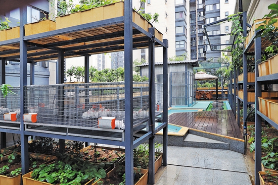 抬眼望去,50余平方米的楼顶空间绿意盎然,多层安置的70余个种植箱中培育的各类蔬菜、果树、食用菌、芽苗菜长势正旺,最底层是一片鱼池,养殖有草鱼、鲫鱼和锦鲤……走进双流区东升街道五洞桥社区党群服务中心,沿循“城乡四态循环农业建筑系统”思路进行的试点工程已经完成主体建设。