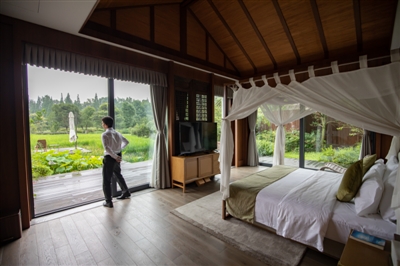 “对现代人来说,‘慢’是一种奢侈品,所以乡村旅游要‘更农村’。”赖成勇说。所谓“更农村”,指的是对原生环境的高品质打造。他用延续、再生、创造三个词形容景区的设计思路。其中的再生,指的是对古建筑的“修旧如新”,比如景区的接待大厅,就是一座有百年历史的川西古建。“修复旧建筑比新建更费时费钱,但唯有这样才能保留这股‘慢’味。”