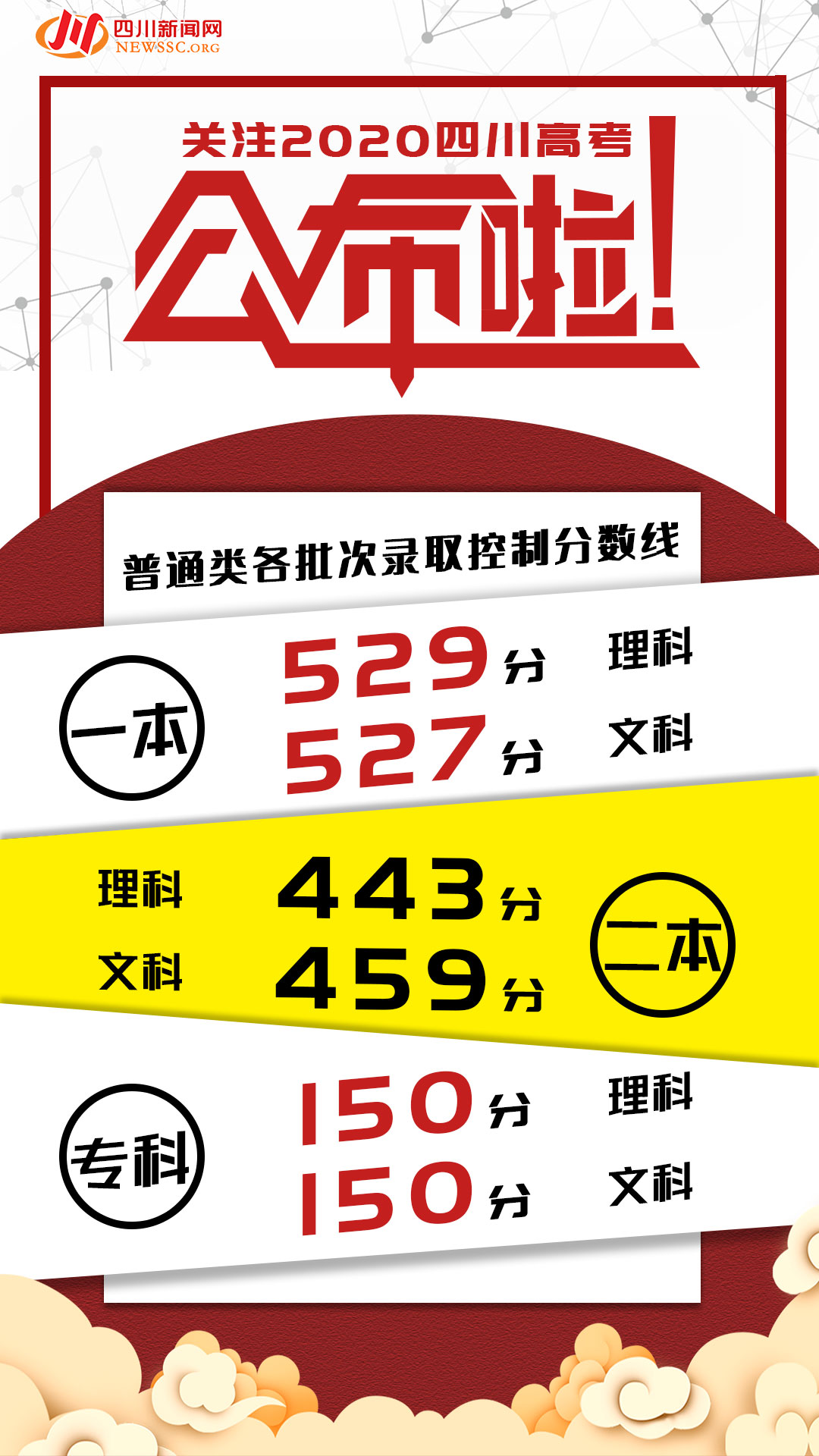 四川新闻网成都7月23日讯(记者 文骥)7月23日,我省2020年普通高校招生考试各类别录取控制分数线已确定,如下: