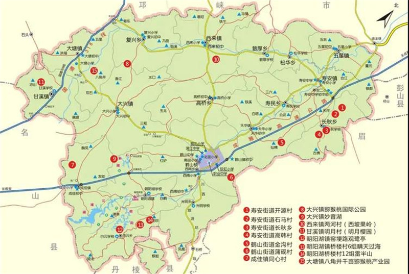 蒲江雪山观景点示意图