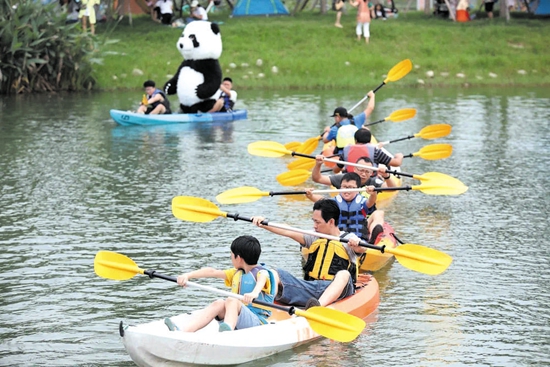 首届国际熊猫运动会分会场活动——趣味皮划艇赛在江家艺苑举行