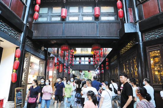 上周的采访中,该负责人特别提到去年提灯走月,夜雨中秋的场景。“民俗晚会、传统集市以及复原汉服展示等吸引了几千人至此,这也充分说明了传统文化的魅力,也侧面反映了‘文化’消费的巨大需求。”为何如此多的人“青睐”锦里?在上述负责人看来,文化背后则是成都这座城市诠释消费的自我表达。“这里仅非物质文化遗产就集聚约30种,如吹糖人、成都皮影、蜀绣等。”该负责人进一步解释,年轻人可以学习传统文化,在这里品味各色美食小吃满足口腹之欲,老年人则可以品茗“摆龙门阵”回味市井生活,可以说不同人群都能在这找到“归属感”。