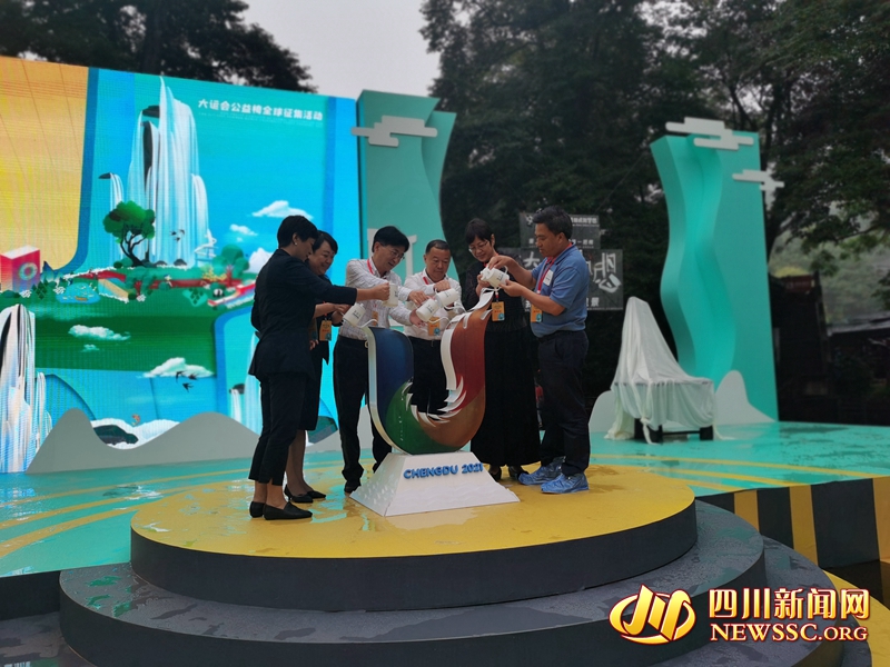 活动现场嘉宾用来自成都各地区的水注入启动装置