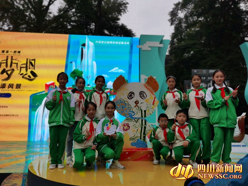来自都江堰奎星小学的10位小朋友共画彩色蓉宝