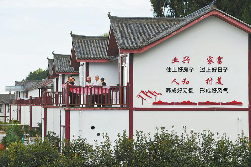 9月10日,巴中市巴州区化成镇长滩河村,村民在新居阳台上聊天。本版图片均由四川日报全媒体记者肖雨杨摄