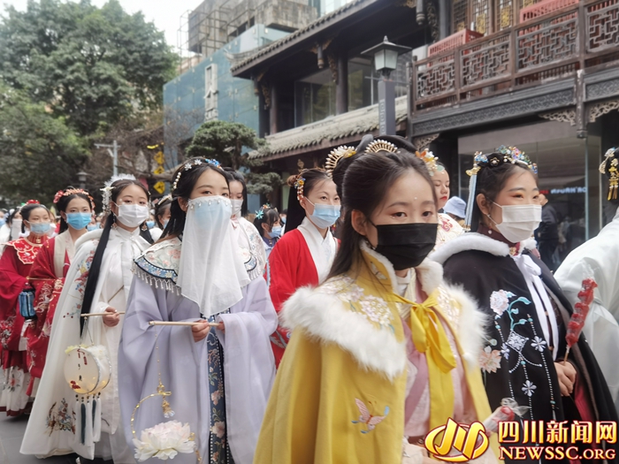 华美吸睛 汉服爱好者惊艳亮相成都街头(视频)