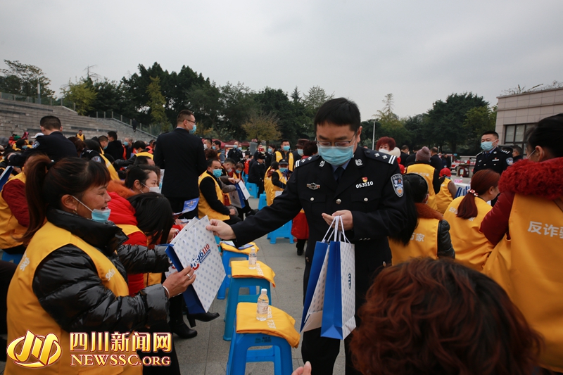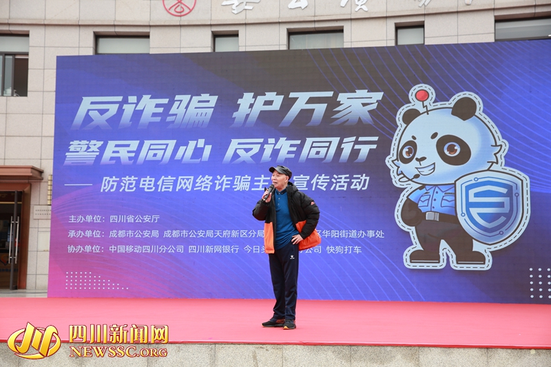 四川新闻网成都11月24日讯(记者 乔永祯 实习生 洪燕青摄影报道)11月24日,由省公安厅主办的“反诈骗·护万家“、”警民同心·反诈同行”——防范电信网络诈骗主题宣传活动在天府新区华阳街道安公广场举行。