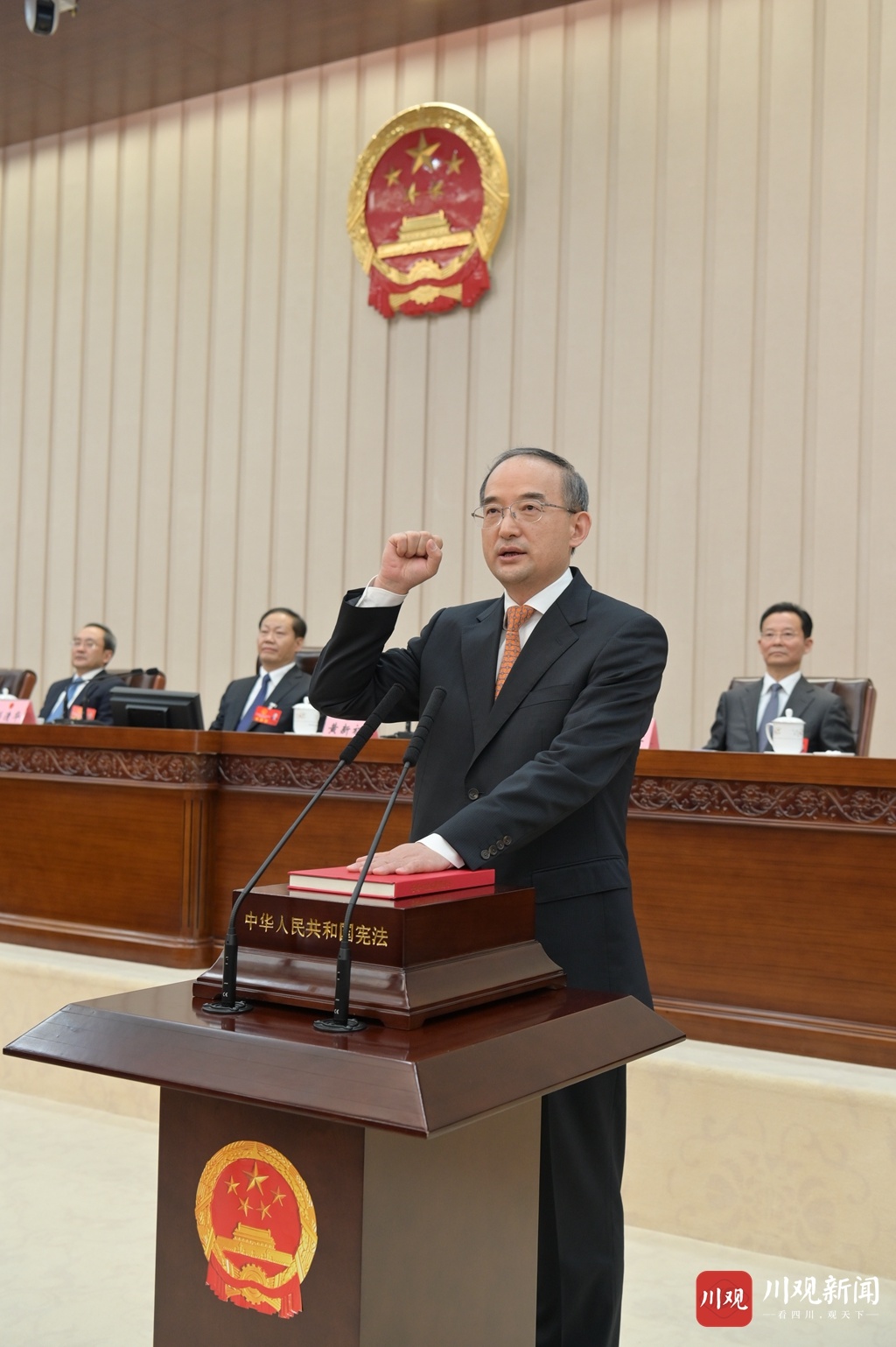 12月2日下午举行的四川省十三届人大常委会第二十四次会议第二次全体会议上,刚任命的四川省副省长、代理省长黄强接受任命书,并向宪法庄严宣誓。
