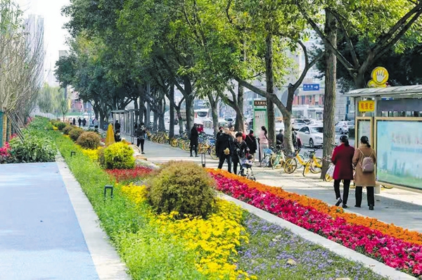 绿道间点缀着形态各异的休闲座椅,趣味休憩“港湾”和层次变化丰富的绿植,营造出精致美观的特色花境,曾经荒芜的空地已然成为街头一道亮丽的风景线,吸引着市民游客前来打卡。
