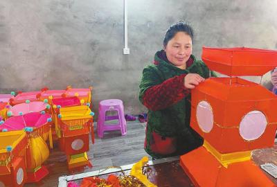 漂亮的花灯还是该镇鸿远村本土制造。今年9月,该村和自贡市胡氏花灯文化传播有限公司合作制灯,如今产品供不应求。