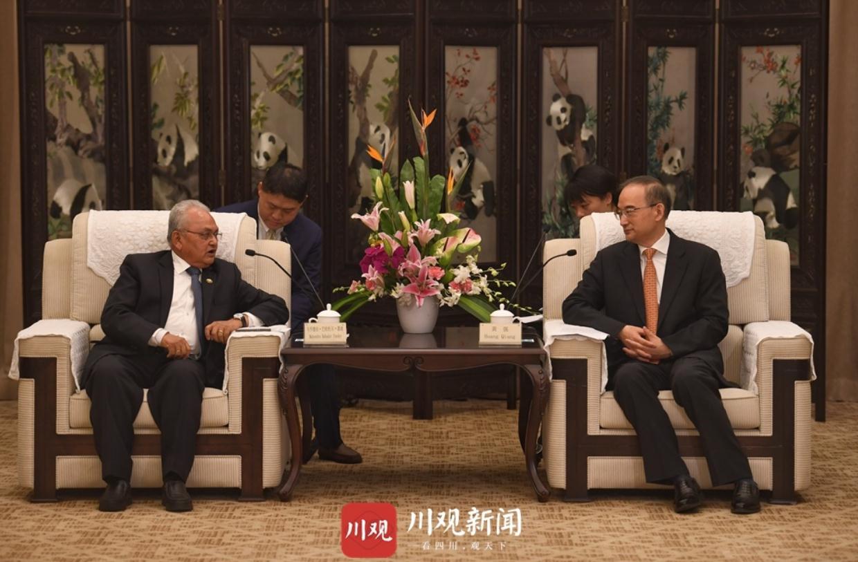 黄强欢迎潘迪大使一行访问四川。黄强说,近年来,四川与尼泊尔在多个领域开展了卓有成效的合作。四川将全力支持尼泊尔成都总领事馆选址工作,推动早日开馆。希望双方共同抓住中国西部大开发、成渝地区双城经济圈建设等重大机遇,加强在经贸、投资、物流等领域合作,通过线上线下多种渠道推进旅游、文化、教育等领域交往交流,更好地造福两地人民。同时,诚挚邀请尼泊尔派团参加今年8月在成都举办的第31届世界大学生运动会。