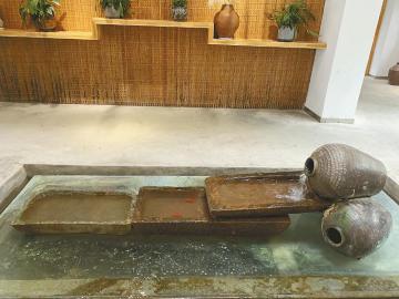 斜源小镇共享中心里,村民过去养猪用的食槽和瓦缸组合颇具特色。