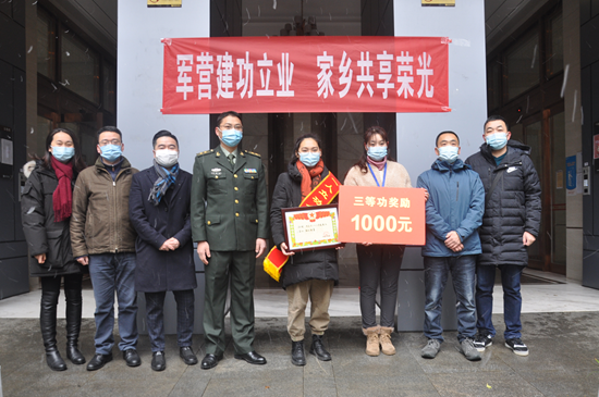 8日,四川新闻网记者从成都市退役军人事务局获悉,1月7日,成都市锦江区将2021年度第一份立功受奖喜报送到现役军人张瑜家中。张瑜是一名驻守祖国边防的军官,因2020年度工作成绩突出,荣立三等功。锦江区退役军人事务局在收到喜报和奖励通知书后,立即对接区人武部及成龙路街道,共同组成“送喜报”小组,而后主动联系协调张瑜的妻子,商定送达时间,及时将喜报送到家中。喜报送达过程中,还组织开展了宣读喜报、为立功受奖军人家庭主要成员佩戴绶带、发放奖励金等仪式,整个过程简朴热烈,彰显了党和国家对军人荣誉的尊崇。