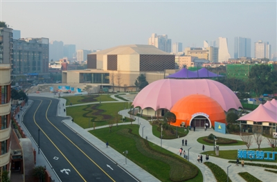 音乐坊是记者探访的第一站。这里是由一环路南一段、新南路与锦江所围合的钻石型区域,并紧邻成都新地标——成都城市音乐厅。