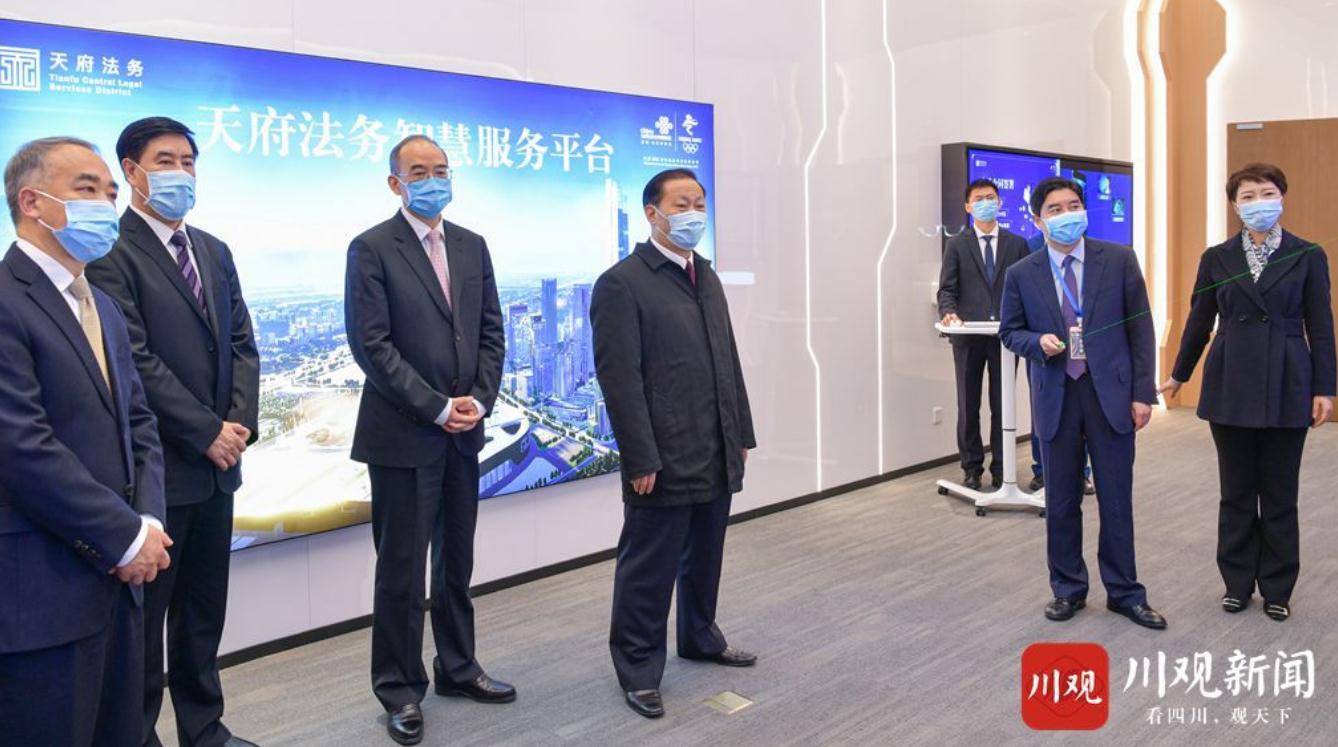 活动开始前,彭清华、黄强等来到天府中央法务区综合服务中心,听取法务区规划建设和重点项目入驻情况汇报,察看天府法务网站展厅,并前往检察服务中心、知识产权维权援助中心、诉讼服务中心、警务服务中心、司法鉴定中心等功能区,详细了解各中心功能设置、服务市场主体、推进知识产权法律保护工作、专业法律服务机构入驻等情况。