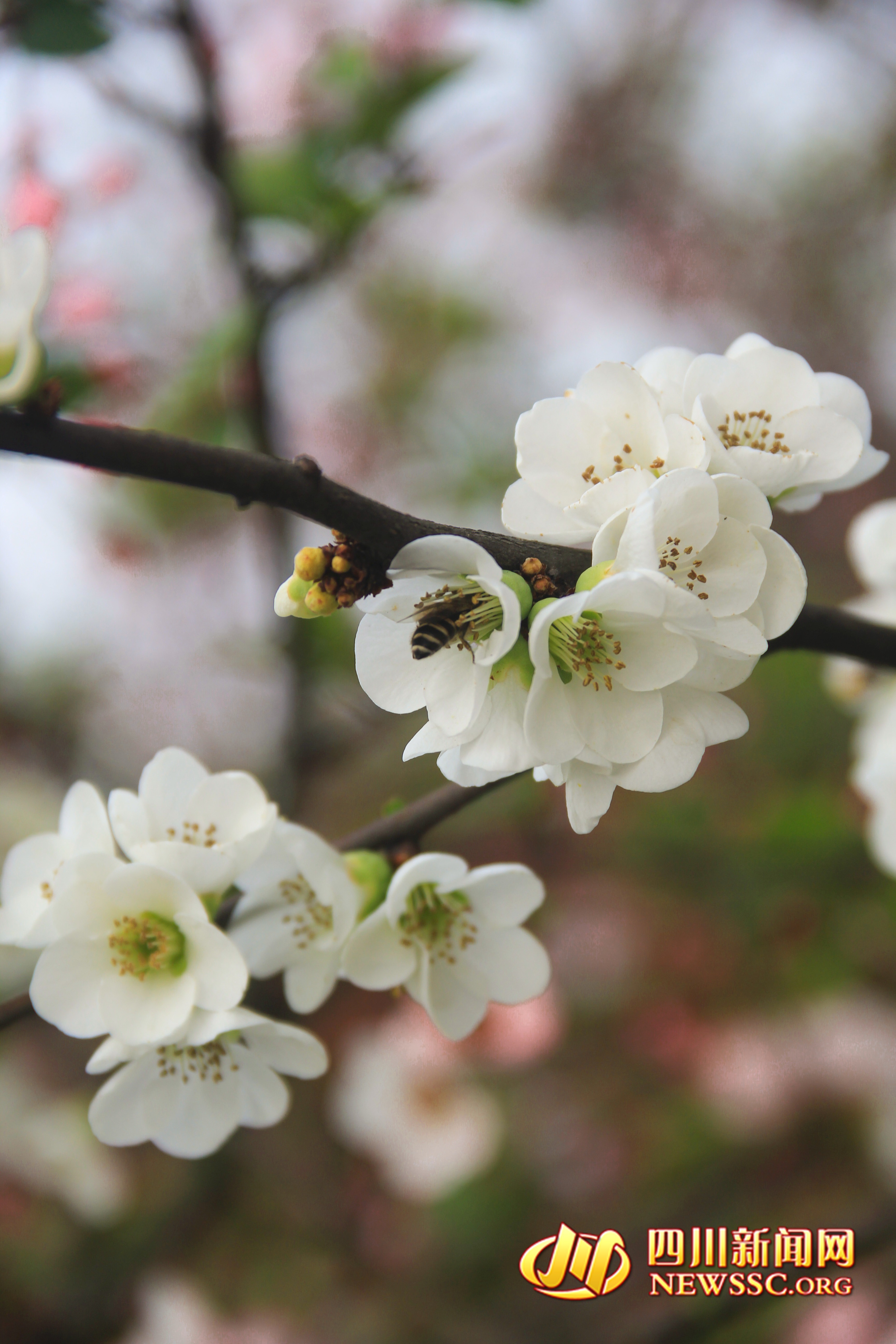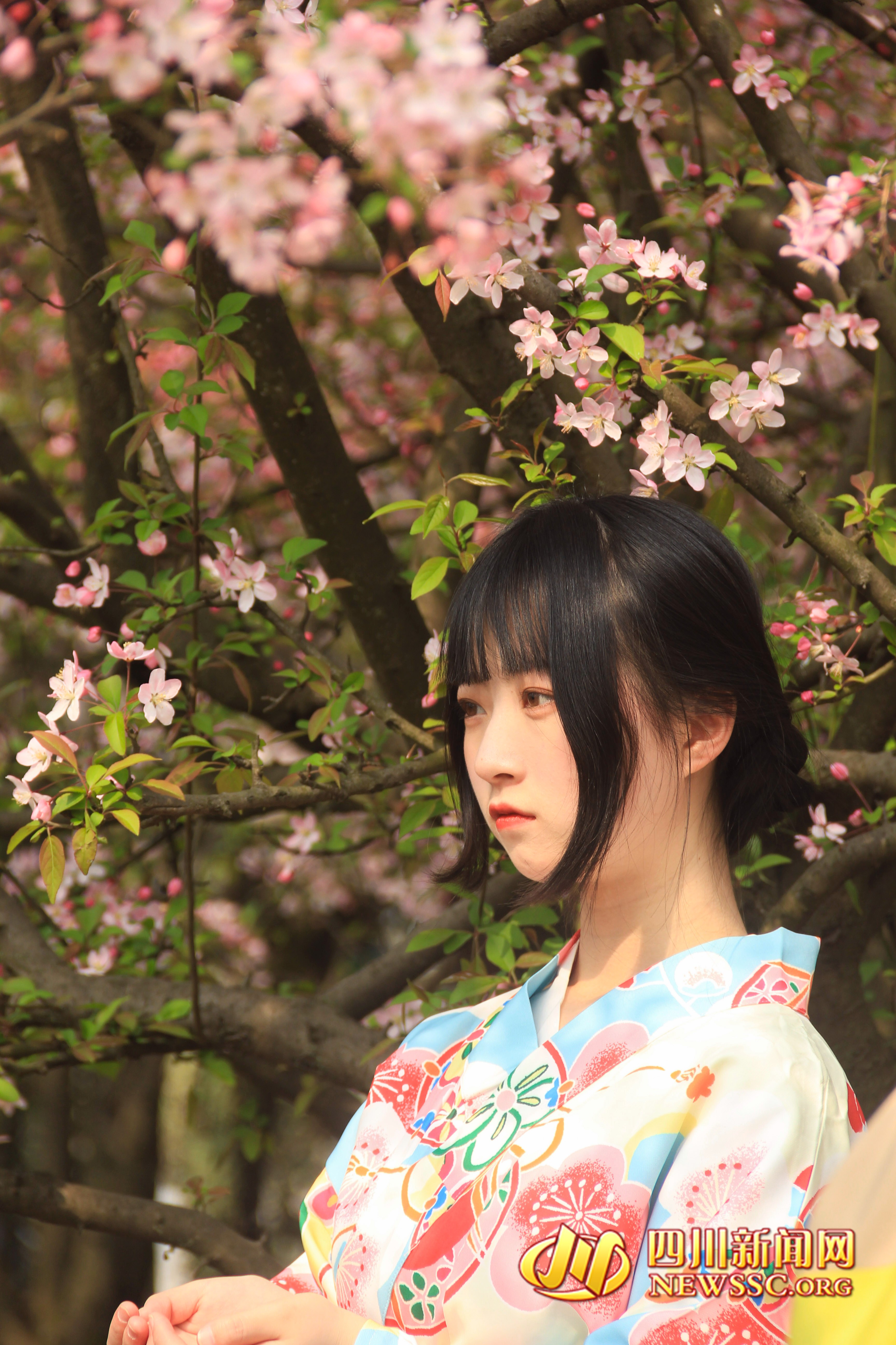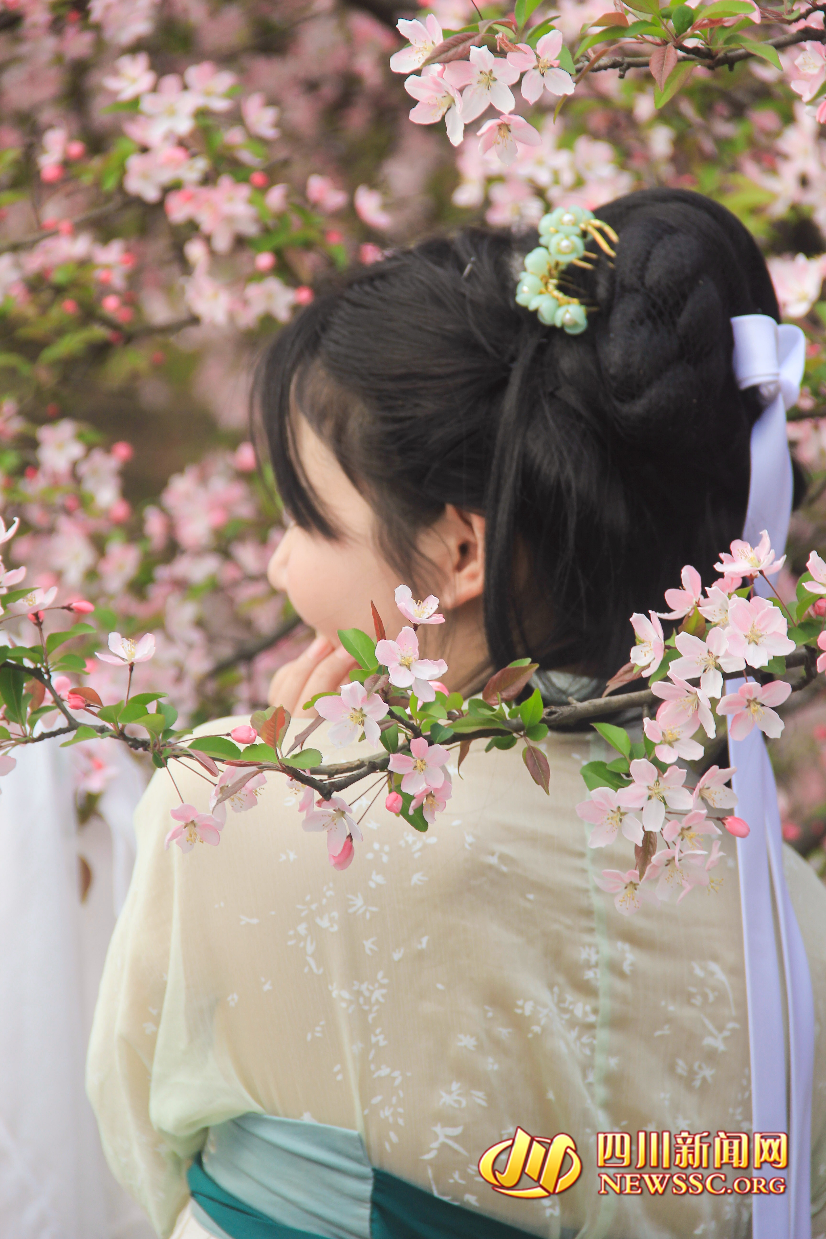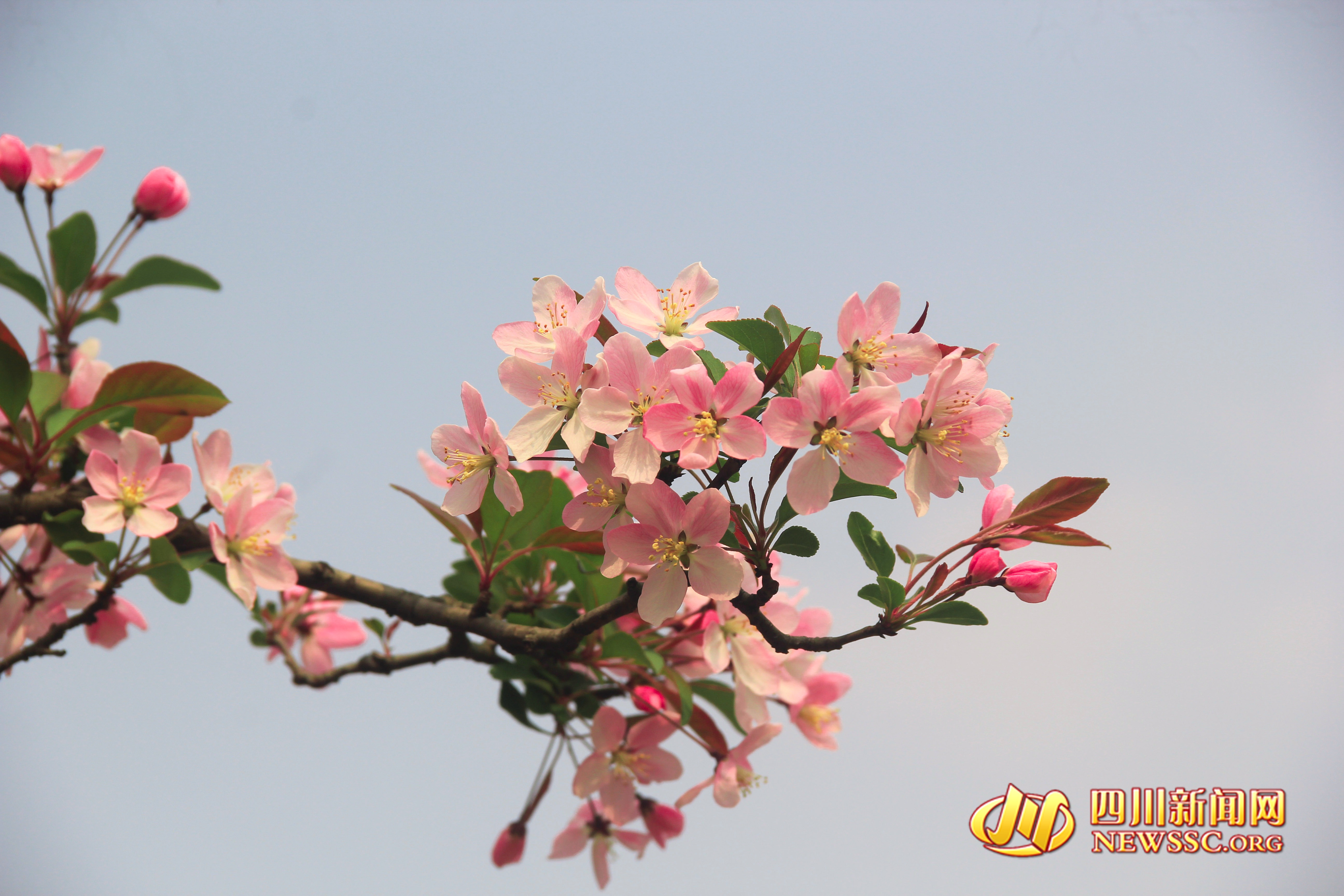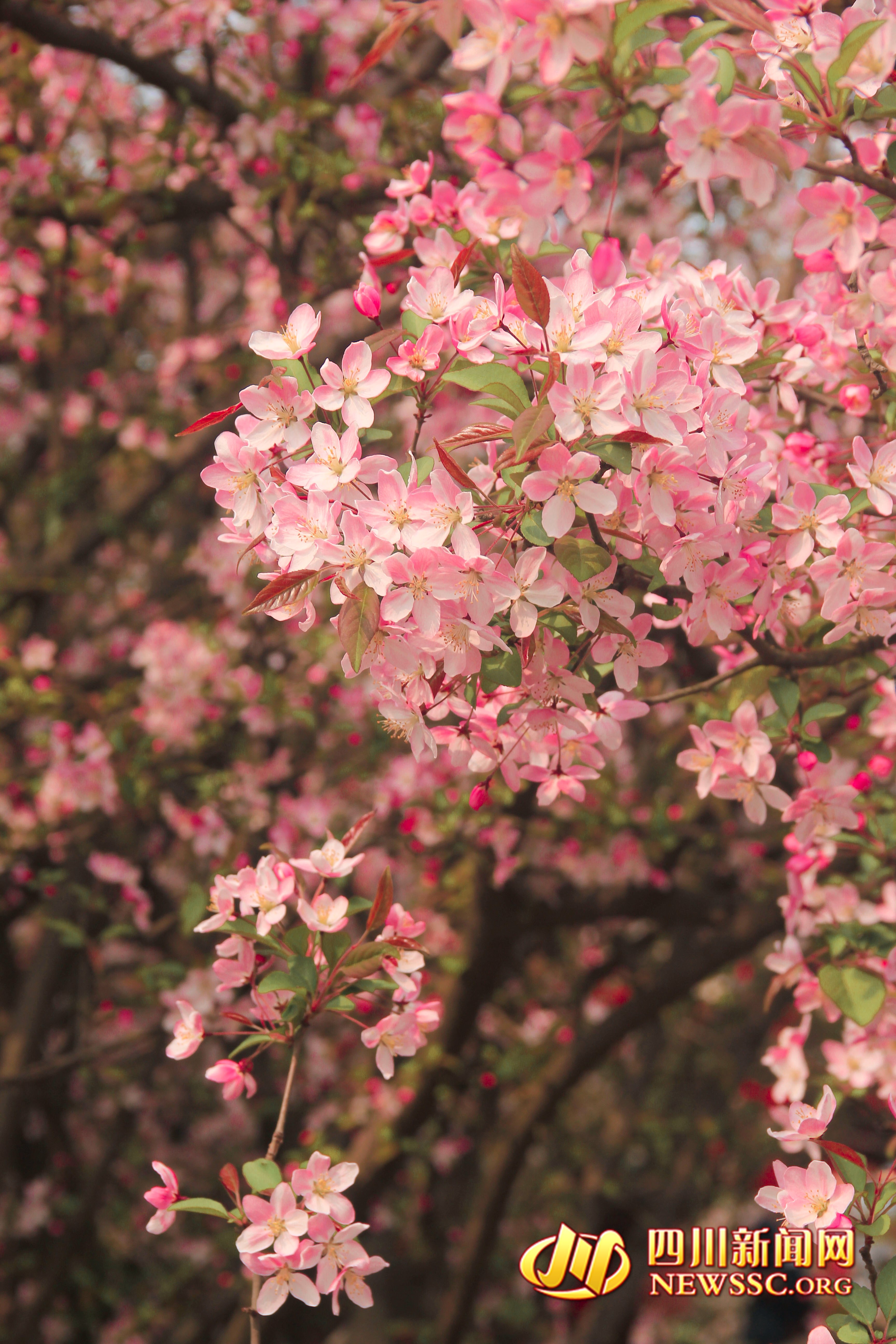 娇艳粉嫩的海棠和人们粉扑扑的脸庞交相呼应