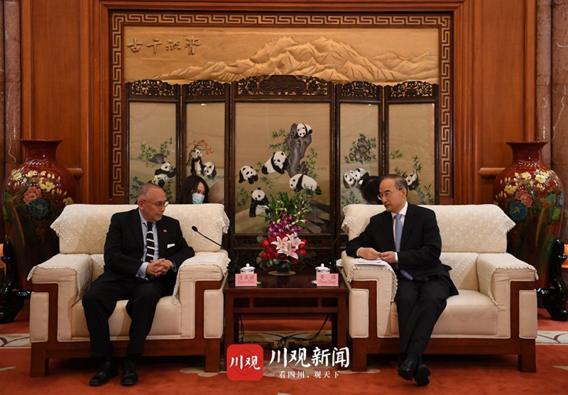 黄强代表四川省人民政府对迪亚兹出任智利首任驻成都总领事表示祝贺和欢迎,并简要介绍了四川经济社会发展情况。他说,在双方共同努力下,智利驻成都总领事馆已顺利开馆运行,将对促进双方交流合作发挥重要桥梁作用。“十四五”期间,四川迎来成渝地区双城经济圈建设、西部陆海新通道建设等前所未有的重大发展机遇。希望共同谋划推动在智利建设国际航空物流枢纽,让四川与南美地区的货物流通更加便捷,让两地老百姓享受到价格更实惠的优质产品;共同深化双方农业科技务实合作,发挥各自优势,推动农业合作走深走实。真诚邀请总领事和智利相关部门、机构负责人及企业代表参加今年9月举行的首届“中国(四川)天府田园农业博览会”。