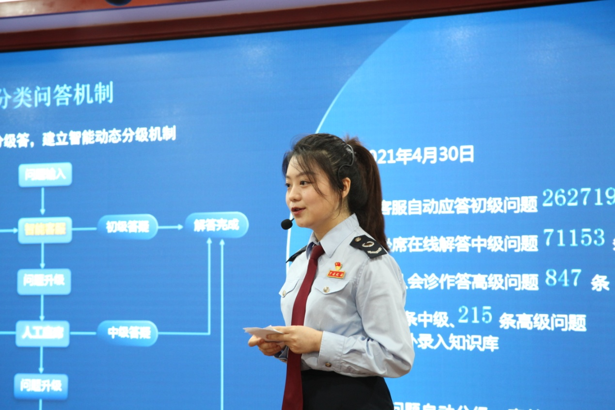 “智能化+数字化”推动纳税服务与时俱进。“开发智能语音平台 创设数字化智能答疑体系”项目引入全国最先进的阿里巴巴达摩院智能语音AI技术,搭建语义理解先进模型,补充健全知识库,建立人机互补模式,实现智能咨询服务与人工咨询服务的有机结合。构建分级分类问答、运维提升、数据应用、考评机制四大支撑机制,保障全流程数字化转型。有效解决了困扰基层税务机关多年的咨询电话拥堵难题,接通率由32.6%提升至99.8%,准确率71%,全国领先。“办税服务厅绩效考核办法优化探索”项目首创了“有效工作时长”为基础的绩效考核方式,用叫号明细数据,按设计的规则计算有效工作时长,全业务全员通考,兼顾效率与公平,极大激发工作热情,助推非接触式办税深入发展。大厅的平均等候时间由原来的9分15秒缩短为52秒;最大等候人数由53人减少为5人,常态等候人数为0。