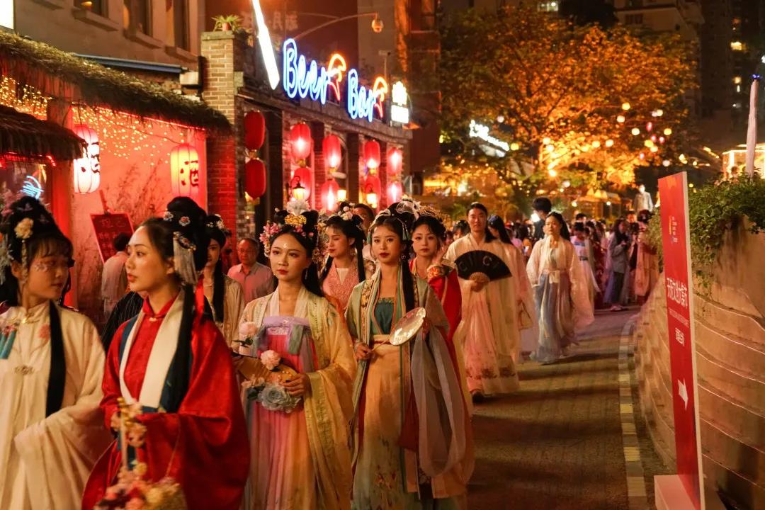 成都市武侯区着力将历史文化融入夜间经济,提炼形成了具有本地特色和文化内涵的武侯夜间消费品牌,各色夜经济形态着眼于社交、休闲的需求,增加沉浸式和体验式消费场景。