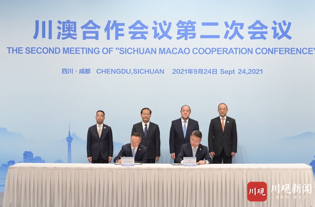 9月24日下午,川澳合作会议第二次会议在成都召开,四川省人民政府与澳门特别行政区政府签署会议纪要和有关重点领域合作备忘录。