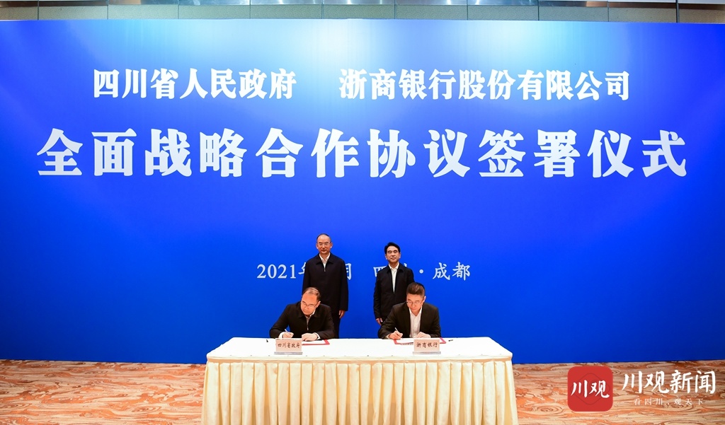 10月27日,四川省人民政府与浙商银行股份有限公司在成都签署全面战略合作协议。省委副书记、省长黄强会见浙商银行董事长沈仁康一行,并共同见证协议签署。