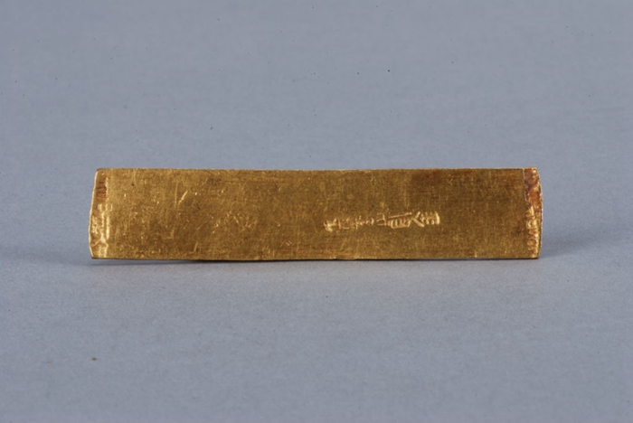时至宋代,社会经济因变革而腾飞,商品经济高度繁荣。1977年,成都金牛区保和公社出土了部分宋代窖藏金器,其中便有不少金牌。这些金牌呈长方形,其上大多錾刻有文字,一般代表地名、铺名、工匠姓名、黄金成色等信息一目了然,不仅展现了宋代成都万商成渊的繁华盛况,也为后人研究宋代商税制度提供了参考。