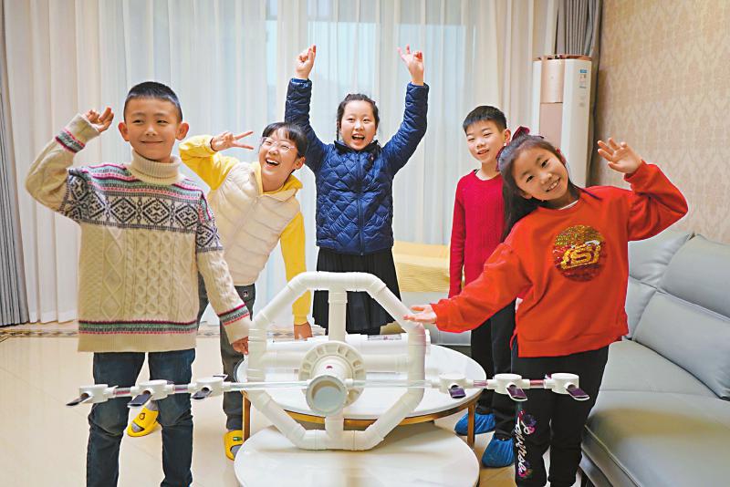 “电影《流浪地球》让孩子们印象深刻,老师还带领他们收看了‘天宫课程’,这让几个小朋友对空间站非常感兴趣。这个寒假,学校给三年级学生布置的假期作业是:用航天知识设计一个心目中的‘外太空之家’。他们立马成立了学习兴趣小组,想制作心目中的空间站。”王选雅的妈妈翟来娟介绍,孩子们结合“天宫号”和“领航员号”设计各自设想的飞行器,并通过环形结构模拟空间站微重力环境。