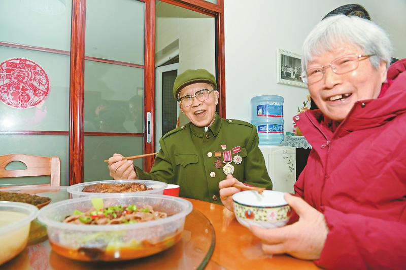 除了周全弟,当天,休养院还给所有在院集中供养的伤残军人送年菜到家,包括抗美援朝老兵涂伯毅老人等。