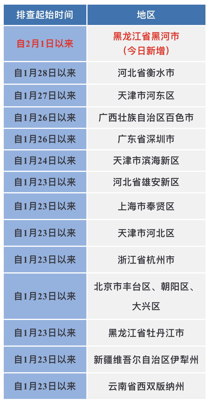 如果您近期有以下地区的旅居史,请第一时间向村(社区)、单位或入住酒店报备,配合做好各项疫情防控工作。