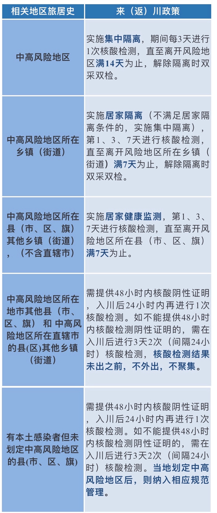 来(返)川人员要主动参与疫情防控工作,积极履行防控义务,做好个人防护,配合落实疫情防控措施。