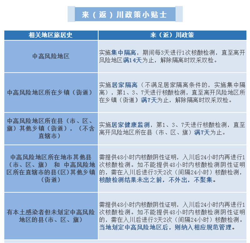 四川疾控最新提示:这些地方来返川 需提供核酸报告