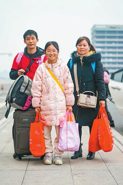 2月10日,自贡市农民工服务中心启动农民工返岗“春风行动”,150名本地农民工免费乘坐高铁前往广州。农民工抵达广州后,当地政府组织专车送达务工企业,做到一站直达,无缝衔接。自贡市荣县度佳镇的马光华、丁春荣夫妇带着女儿乘坐这趟高铁一起奔赴广州上班求学。他们全家一共带了9件大大小小的行李,里面塞满了自己做的香肠、腊肉、咸菜。早上临出门,丈夫马光华又检查了一下包,“青花椒油放在哪里了,这个不能忘记了。”这几瓶椒香浓郁的青花椒油是马光华春节期间亲手做的,这是家乡的味道,也是带给工友们的特别新年礼物。
