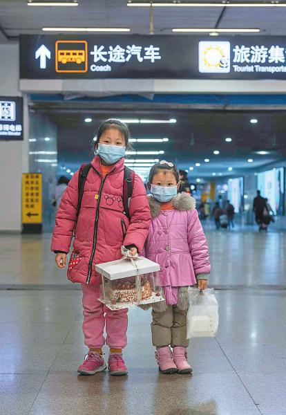 礼物:蛋糕 旅途:成都—威远 1月26日,10岁的姐姐杨一一(左)和妹妹杨双绮提着挑选好的蛋糕准备回家和爸爸团聚。“爸爸在外工作一年辛苦了,这是我们送给他的新年礼物。”杨一一说。